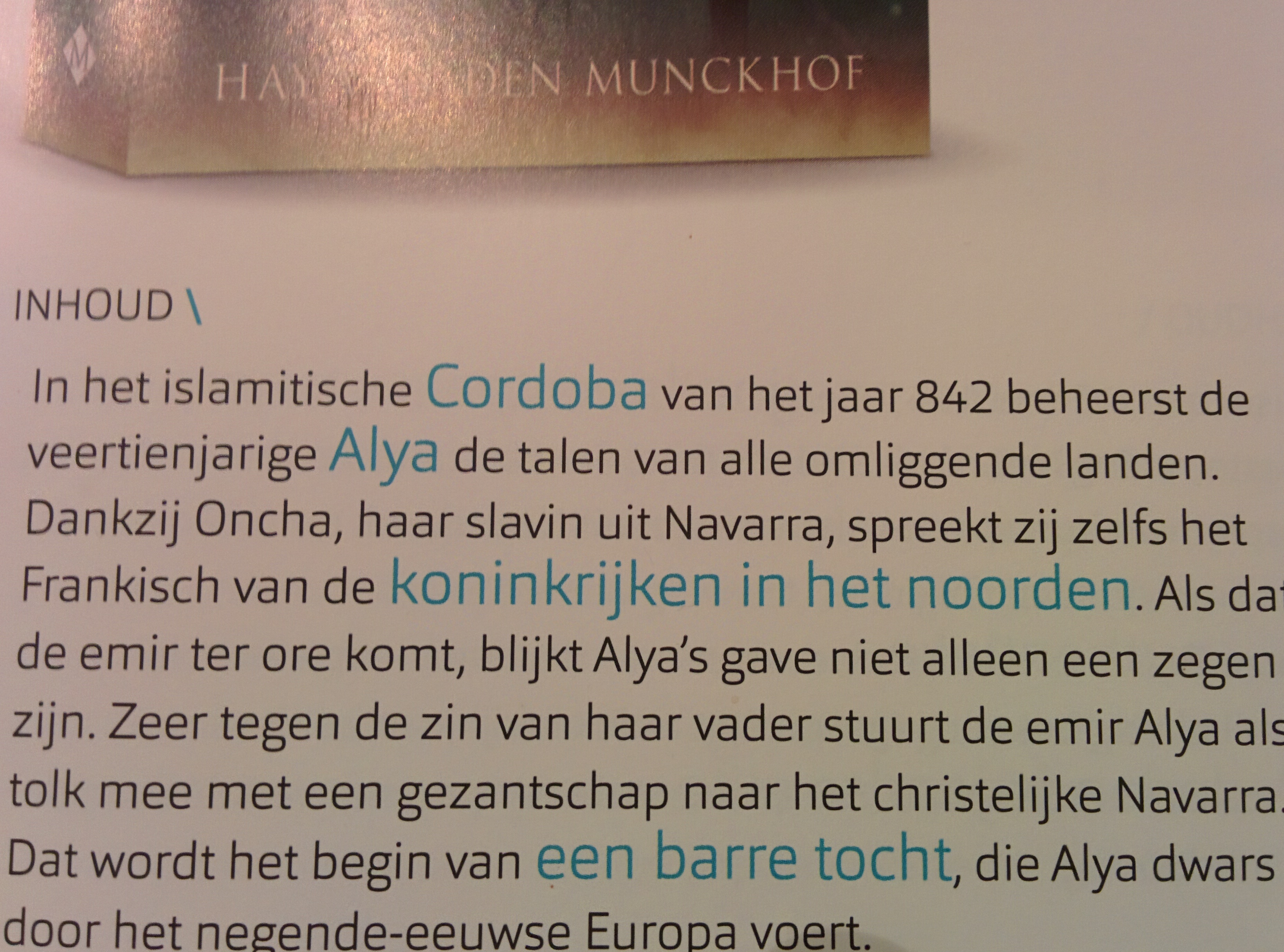 Na de eerste redactieronde van ‘Alya’ had ik een tijd de handen vrij om weer eens wat korte verhalen te schrijven, ook weer in historische sferen trouwens. Dat leverde vorige maand al vast één leuk resultaat op. Mijn verhaal ‘Umars opdracht’ won de tweede ronde van een historische schrijfwedstrijd voor korte verhalen tot maximaal drieduizend woorden, namelijk ‘Anno Domini 892’ van Godijn Publishing. Dat betekent in ieder geval vast dat het komend najaar in de wedstrijdbundel gepubliceerd wordt.